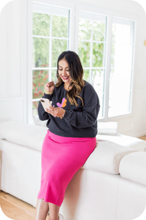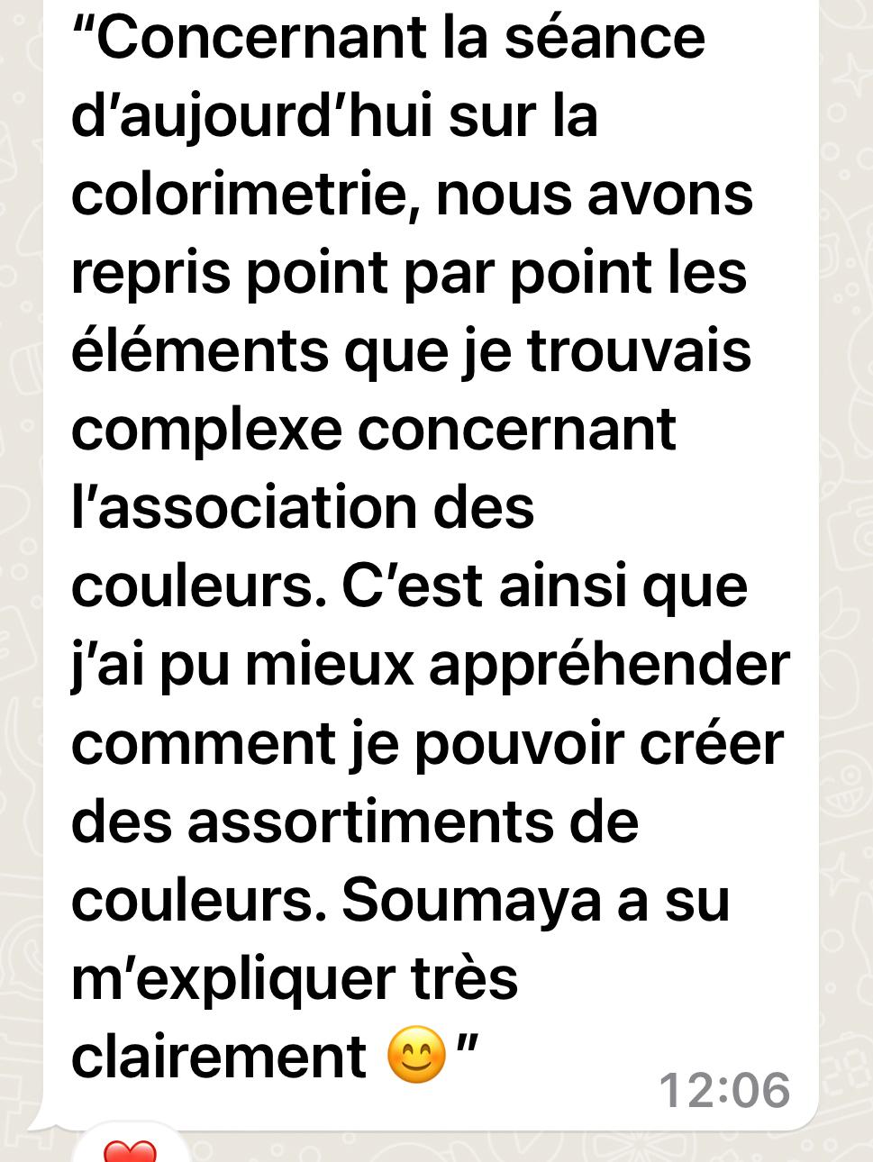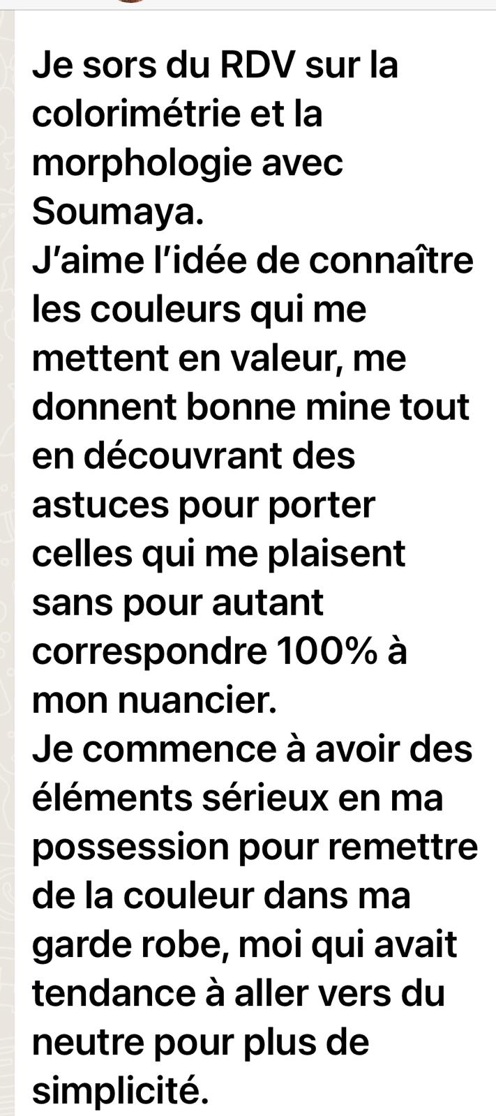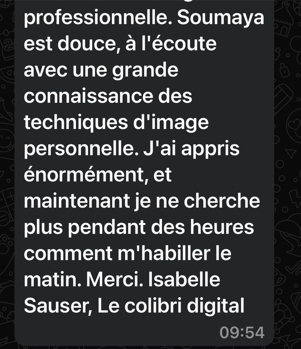 un accompagnement où tu as accès à une coach en image à tout moment, qui t’aide à faire des choix éclairés tout en te donnant les clés pour rester autonome.