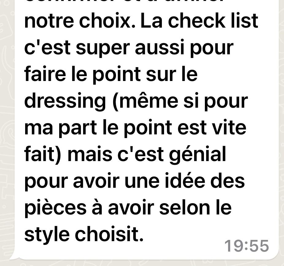 Ce suivi au quotidien n’existe pas sur le marché ou alors tu bascules sur un Personal shopper qui fait le job pour toi mais faut aligner le budget en face ! Et tu perds ton autonomie, tu es dépendante car tu dois faire appel à elle à chaque besoin…